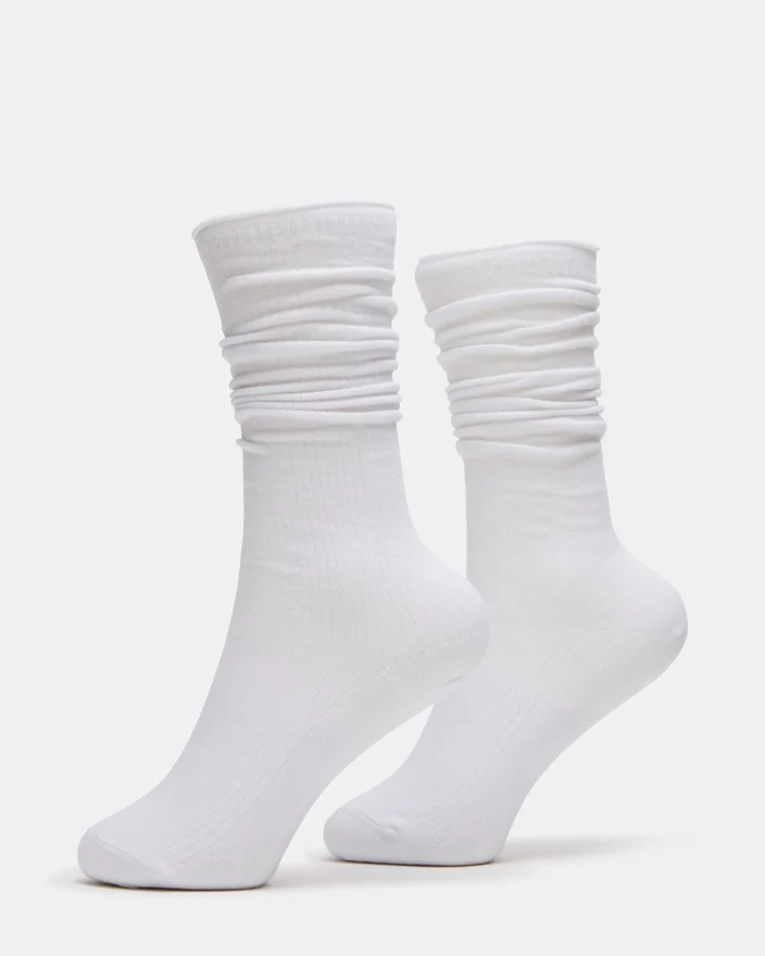 Conjunto de 2 pares de meias largas com nervuras, brancas