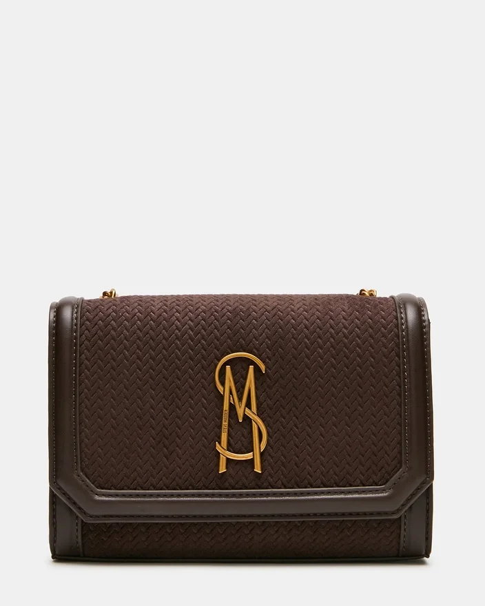 Habilmente confecionada para quem está sempre em movimento, a bolsa tecida Larisa Chocolate é uma pequena bolsa a tiracolo com logótipo, concebida para acomodar os seus itens essenciais. Com uma prática alça a tiracolo em corrente e uma aba frontal com fecho magnético, manter os seus pertences seguros nunca foi tão fácil. Perfeita para ter as mãos livres.