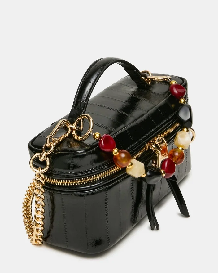 A Herra Bag Black Eel é uma bolsa versátil, concebida para a elegância do dia a dia. Com uma alça com contas e uma pega superior que chamam a atenção, esta peça transita com facilidade do dia para a noite. A alça transversal removível oferece opções de transporte flexíveis, enquanto o fecho de correr seguro mantém os seus itens essenciais protegidos. Perfeita para quem aprecia tanto o estilo como a funcionalidade nos seus acessórios.