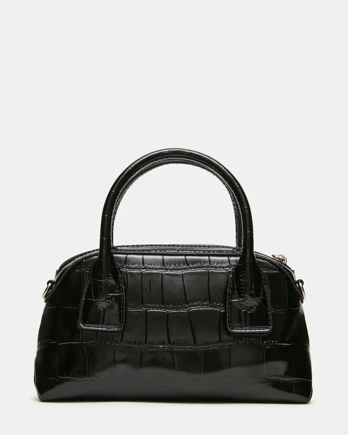 A Mala Melodie em Pele de Crocodilo Preta apresenta uma alça superior versátil combinada com uma alça transversal removível para um uso adaptável. Enriquecida com um encantador pingente de urso removível e um lenço colorido, acrescenta um toque sofisticado ao seu conjunto. Guarde os seus itens essenciais com o fecho de correr, enquanto a bolsa interior na parede traseira oferece arrumação organizada para itens mais pequenos. Esta bolsa combina detalhes elegantes com um design prático, perfeita para um uso diário refinado.
