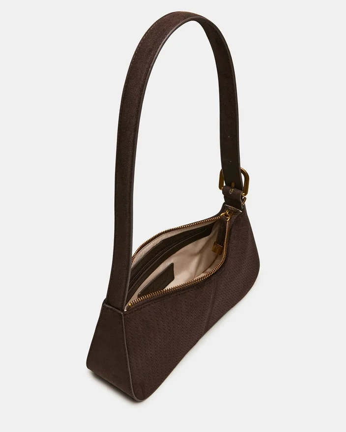 A bolsa tecida Tanzie Chocolate combina um estilo intemporal com funcionalidade prática. Esta bolsa de ombro apresenta uma alça com detalhe de fivela em dois tons que acrescenta interesse visual a qualquer look. O fecho de correr seguro mantém os seus itens essenciais protegidos enquanto está em movimento. Perfeita para o uso diário, esta bolsa transita facilmente do trabalho para as aventuras de fim de semana.