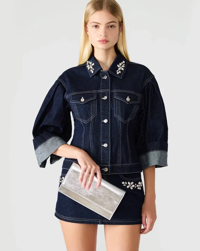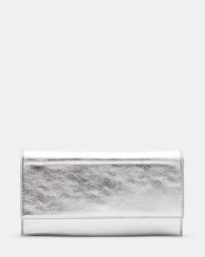 Habilmente confecionada e versátil, a Juliana Bag Silver é um artigo essencial do guarda-roupa. O design tipo clutch oferece conveniência e estilo, com um fecho magnético e uma alça transversal removível com corrente. O seu bolso interior na parede traseira permite guardar cartões de crédito e objetos de valor, tornando-a perfeita para qualquer ocasião.