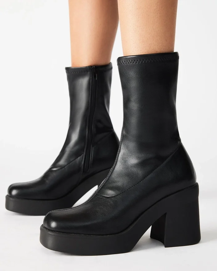 Dê um toque retro a todos os seus looks com as Klayton. Assentes em sapatos de plataforma grossa, estas botas inspiradas nos anos 70 têm um ajuste justo, semelhante a uma meia, e combinam com tudo, desde saias midi a vestidos florais.