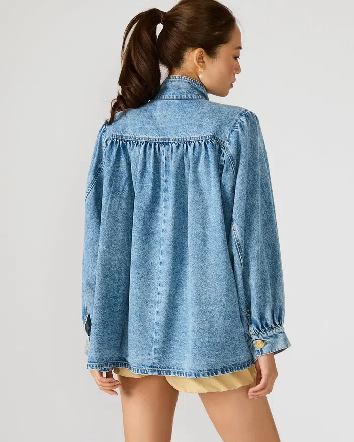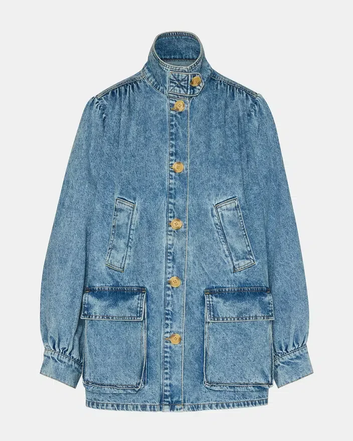 O casaco de ganga Marceline Forever Blue apresenta uma silhueta intemporal com um corte moderno. Confecionado em ganga resistente, este casaco de manga comprida com botões apresenta detalhes clássicos que realçam o seu estilo versátil. O seu design estruturado oferece opções de sobreposição para climas de transição, proporcionando conforto e um visual elegante, ideal para um estilo Casual sofisticado.
