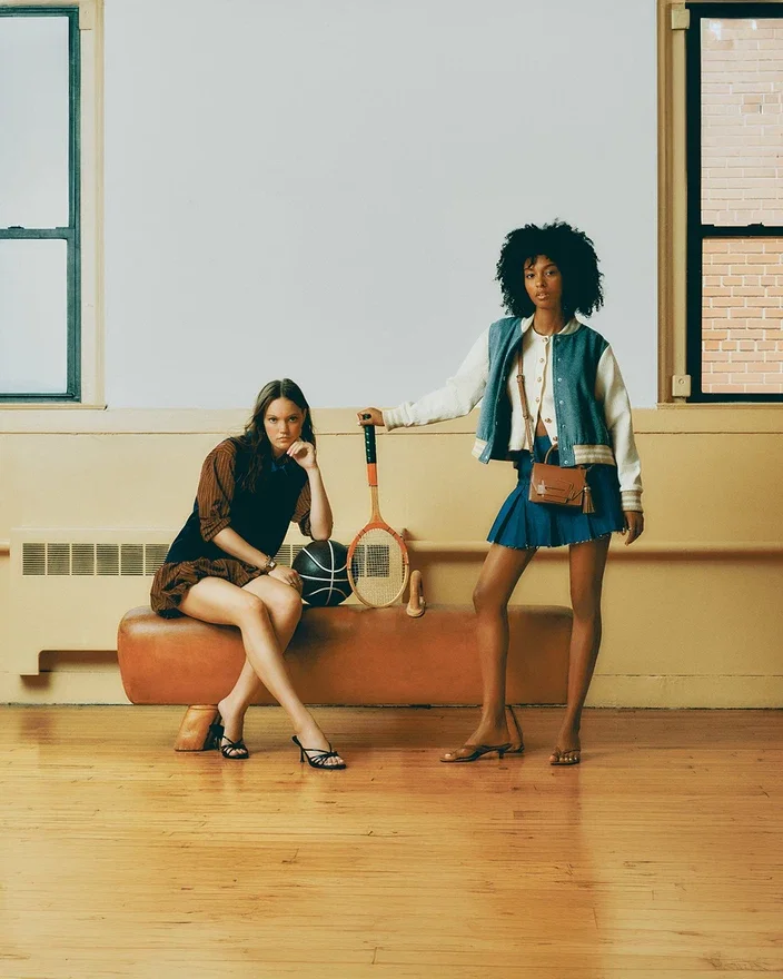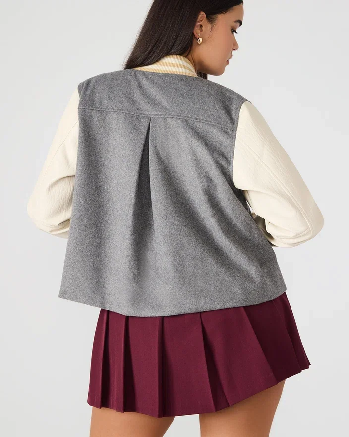 • Mangas em couro contrastante