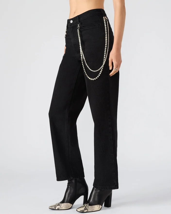 Estas calças de ganga Swift de perna larga combinam estilo e praticidade com bolsos funcionais à frente e atrás para um arrumação conveniente. A corrente removível acrescenta um detalhe versátil e ousado, permitindo-lhe personalizar o seu look. Concebidas para o conforto e um corte descontraído, estas calças de ganga são a escolha ideal para um guarda-roupa moderno e na vanguarda da moda.