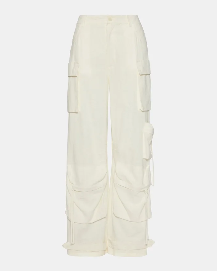 - Os três bolsos cargo inferiores apresentam puxadores de fecho prolongados