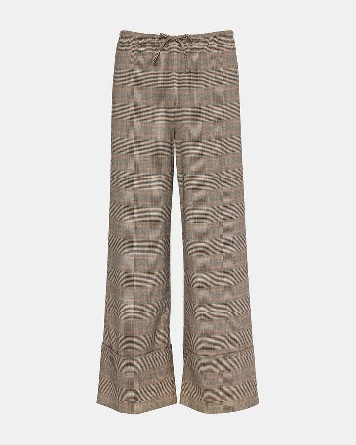Estas calças xadrez Idra sem fecho apresentam um sofisticado fecho com laço à frente para um ajuste regulável e uma bainha ajustada na parte inferior, combinando conforto com um estilo requintado. Ideais para um uso versátil, oferecem facilidade de movimentos, mantendo uma silhueta elegante.