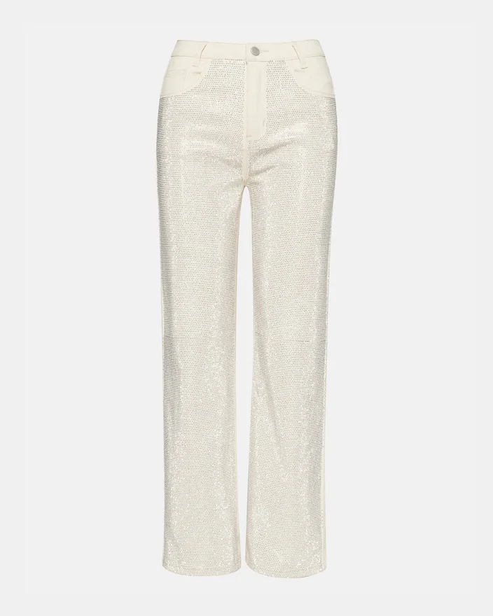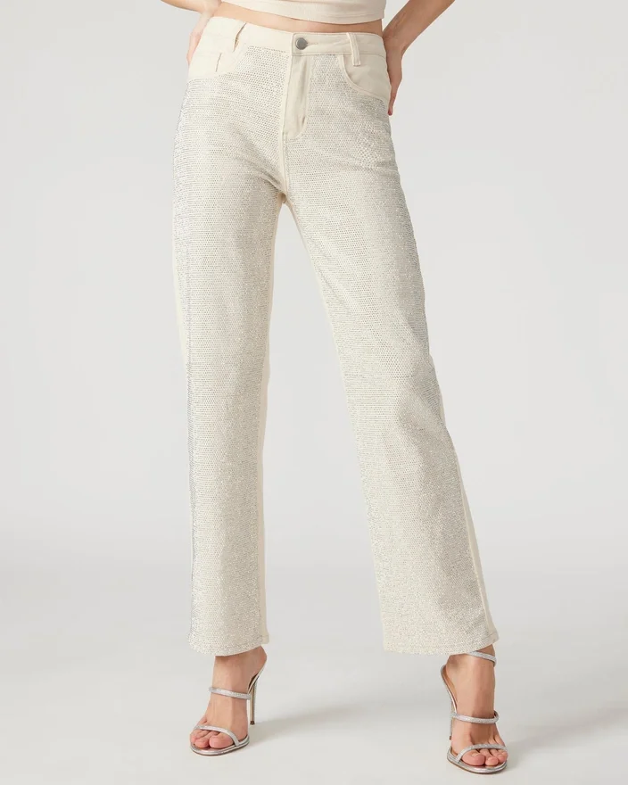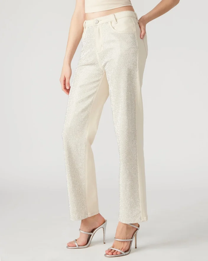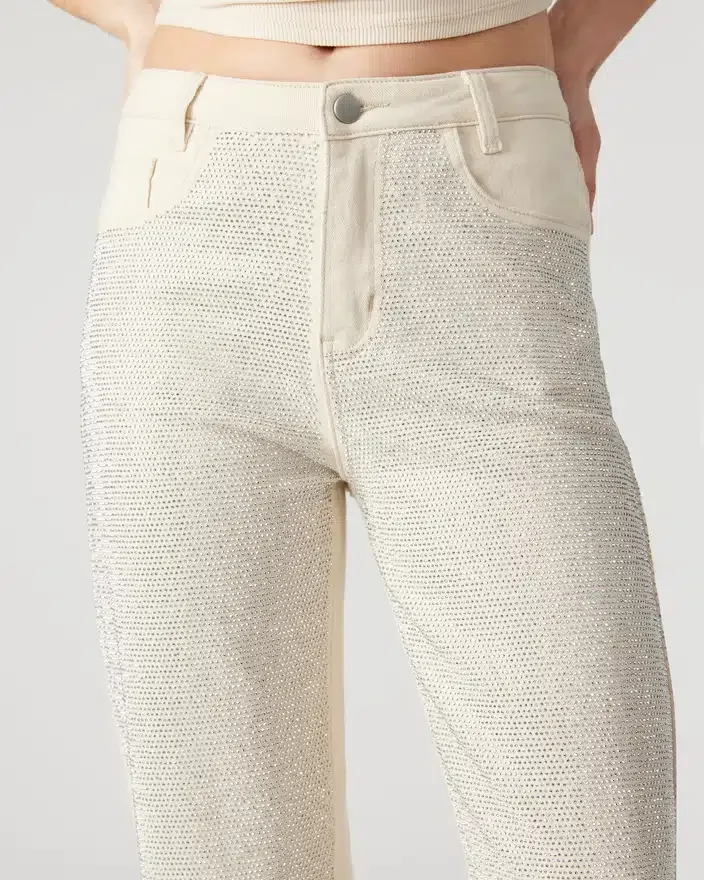 As calças Jesse Jeans são as calças de ganga de perna reta com detalhes perfeitas, adornadas com strass deslumbrantes na frente. Eleve o seu estilo com esta peça única e apelativa, perfeita para marcar a diferença.