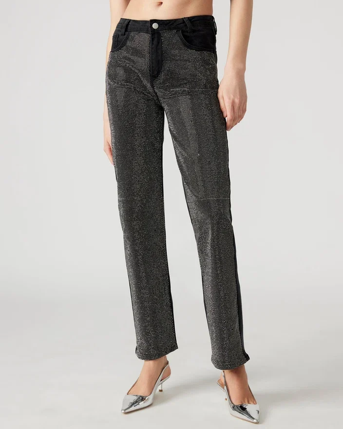 As calças Jesse Jeans são as calças de ganga de perna reta com detalhes perfeitas, adornadas com strass deslumbrantes na frente. Eleve o seu estilo com estas calças únicas e apelativas, perfeitas para marcar a diferença.<!–