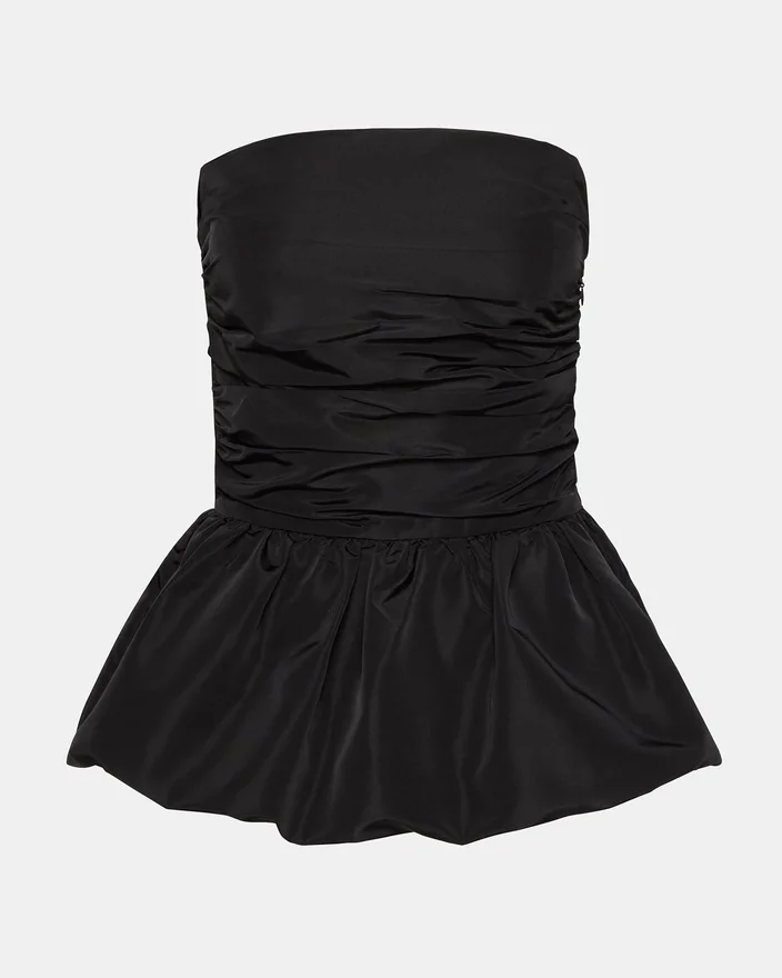 Eleve o seu estilo com o nosso Top Amari. Este top apresenta um design sem alças e um corte em taffeta com bainha em bolha, sendo simultaneamente chique e confortável. Perfeito para qualquer ocasião, irá adicionar um toque de sofisticação ao seu guarda-roupa.