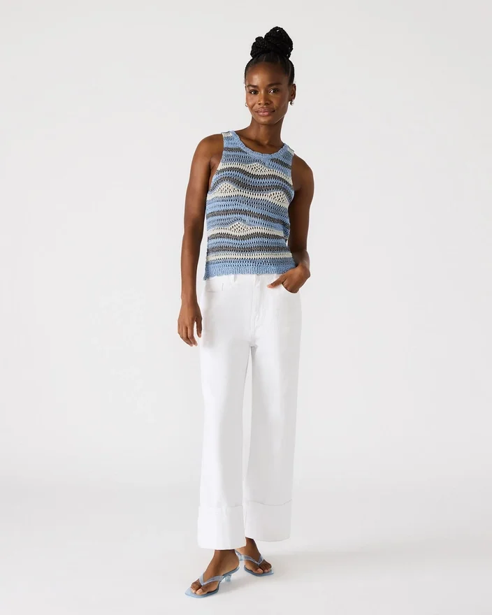 Confecionado em tecido de croché, o Top Hannah oferece um toque único e elegante à clássica camisola sem mangas. Leve, mas confortável, este top é perfeito para adicionar textura e interesse a qualquer look.