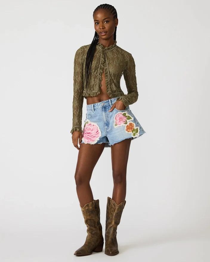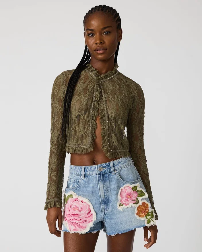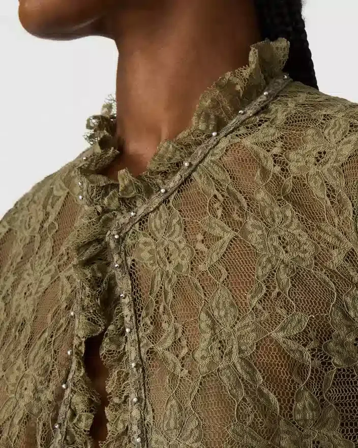 O Top Linden Verde Montanha combina elegância natural com detalhes ousados. A construção em renda transparente oferece uma estética delicada e romântica, enquanto o fecho frontal proporciona versatilidade de estilo. Os detalhes com tachas acrescentam um toque inesperado, tornando esta peça perfeita para usar em camadas ou sozinha. Ideal para uma saída à noite ou para um look Casual com as suas calças de ganga favoritas.