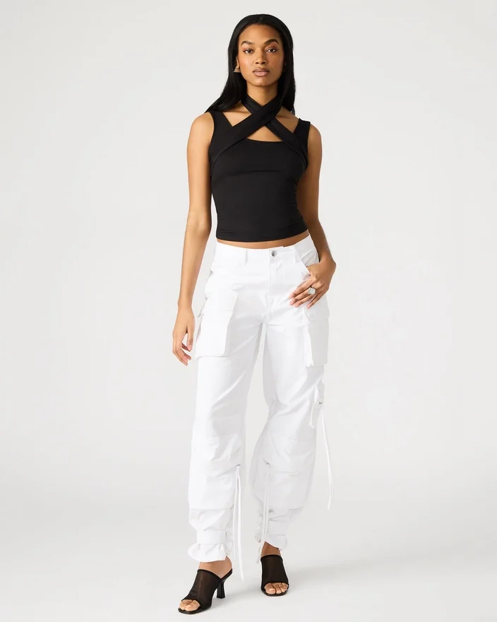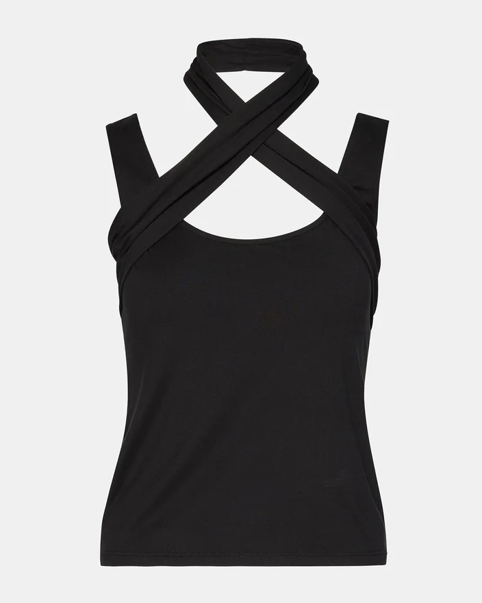 Apresentamos o Top Percy, uma camisola sem mangas com um design cruzado único. Este top oferece um estilo vanguardista com o seu design inovador, perfeito para marcar a diferença. Fabricado com materiais de alta qualidade para um ajuste confortável.