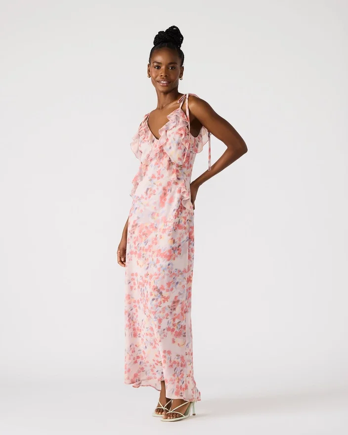 Seja o centro das atenções com o deslumbrante vestido Adalina. Este vestido apresenta um decote em V e detalhes com folhos que a farão destacar-se em qualquer ocasião. Com o seu design sem mangas, este vestido maxi é a adição perfeita ao seu guarda-roupa. 54″