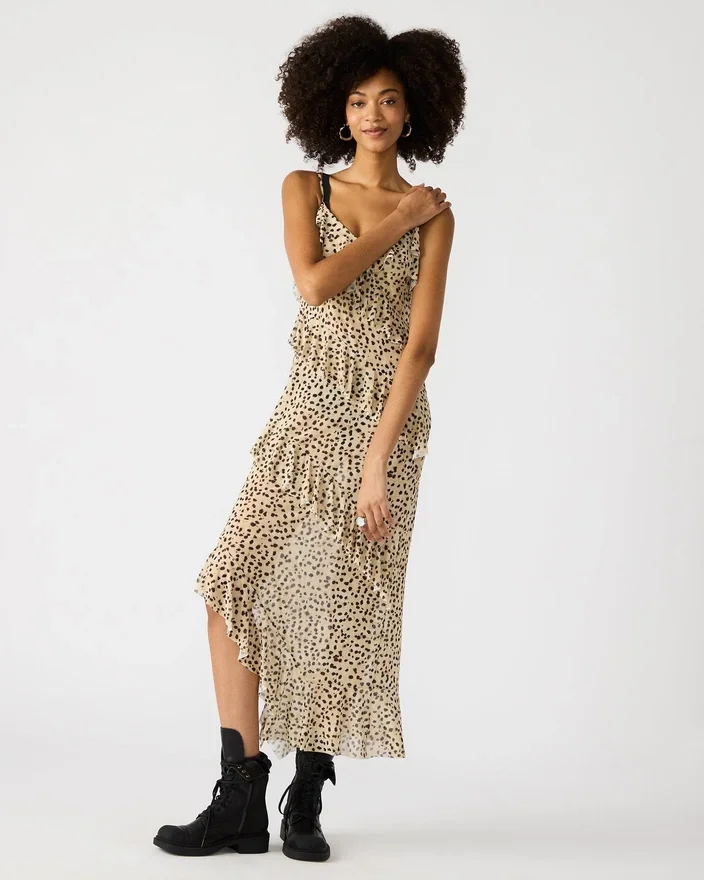 Este vestido Aida apresenta um design esvoaçante com folhos e decote em V, perfeito para um look confortável e elegante. O seu comprimento maxi e o design sem mangas oferecem versatilidade e respirabilidade. Confecionado com materiais de alta qualidade, este vestido é um must-have para qualquer pessoa que siga as tendências da moda e procure uma peça marcante para o seu guarda-roupa.