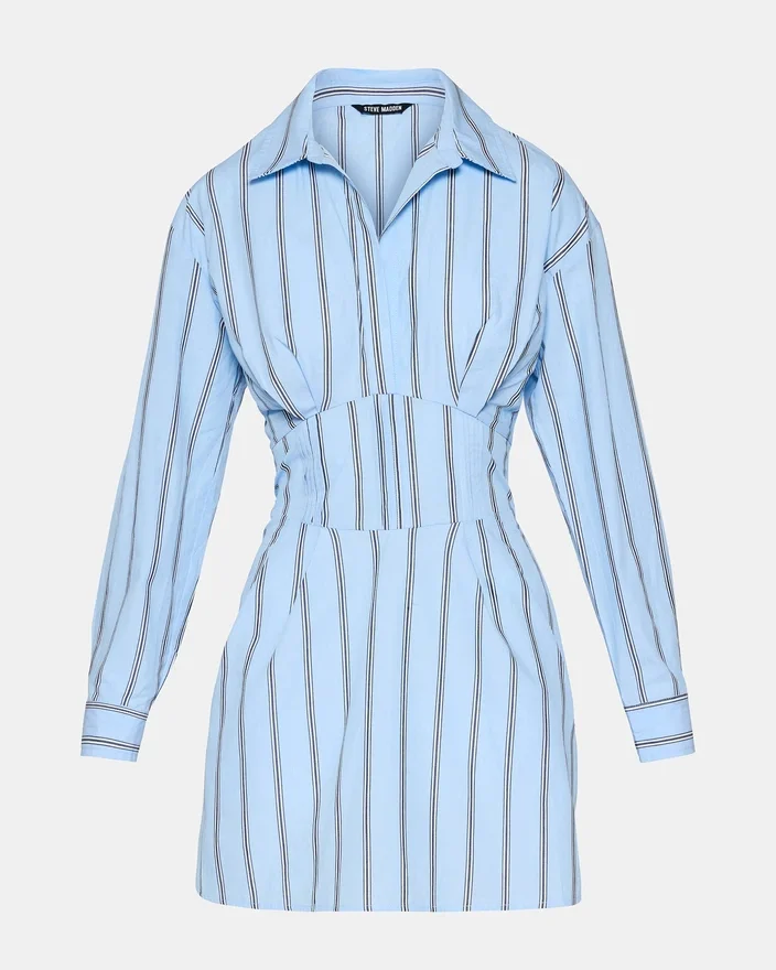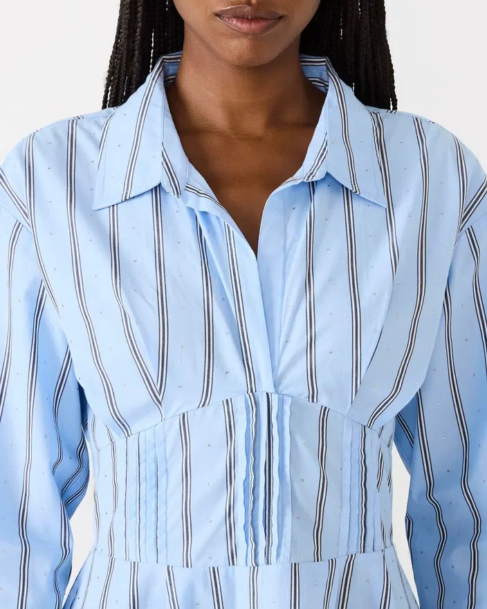 O vestido Ariany azul-escuro combina sofisticação intemporal com praticidade para o dia a dia. Este modelo de manga comprida apresenta um decote com gola elegante que valoriza qualquer ocasião, enquanto a cintura marcada cria uma silhueta lisonjeadora que define a sua figura. Os bolsos frontais funcionais acrescentam utilidade sem comprometer o estilo, tornando esta peça igualmente adequada para o escritório ou para passeios de fim de semana. O vestido oferece versatilidade que combina facilmente com o seu guarda-roupa atual, proporcionando um look elegante que transcende as estações.
