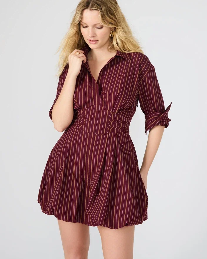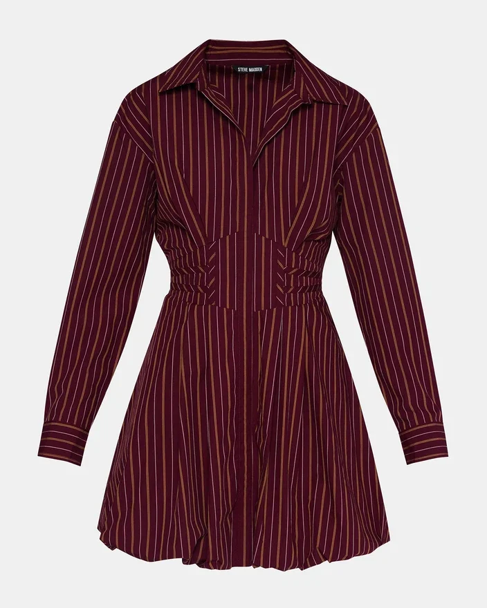 O vestido Arielle oferece uma versão refinada do clássico vestido de manga comprida com botões. O seu corte ajustado e a rica tonalidade vinho criam uma silhueta sofisticada, ideal para ambientes profissionais ou ocasiões elegantes.