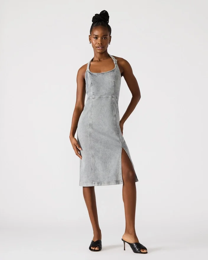 Confecionado com mestria, o vestido de ganga Gia é um must-have para qualquer guarda-roupa. A sua abertura lateral acrescenta um toque de sofisticação, enquanto o fecho de correr nas costas garante um ajuste perfeito. Confecionado com materiais de alta qualidade, este vestido é elegante e duradouro. Perfeito para qualquer ocasião.