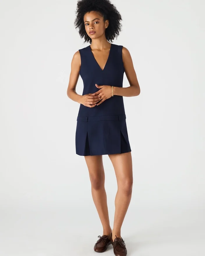 O vestido Henley apresenta um decote em V lisonjeador e uma saia plissada divertida que acrescenta movimento e estilo. Concebido como um mini-vestido, inclui presilhas para cinto para um ajuste personalizável e um fecho de correr nas costas para facilitar o uso. Esta peça combina detalhes clássicos com um corte moderno, perfeita para looks versáteis e elegantes.