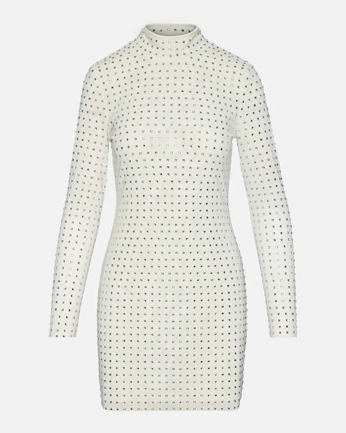 Eleve o seu estilo com o nosso vestido Krista. Este mini-vestido de manga comprida apresenta um decote alto e fecho de correr nas costas. Este vestido deslumbrante também apresenta enfeites exclusivos de strass em forma de quadrado para um toque de glamour. Marque a diferença com esta peça elegante e sofisticada, perfeita para qualquer ocasião.