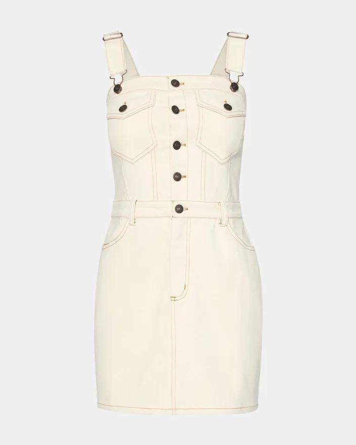 Este vestido Lake apresenta um estilo versátil de macacão de ganga sem mangas e um prático fecho de botões. Com bolsos laterais, este mini-vestido combina praticidade com moda para um look confortável e chique. Perfeito para qualquer ocasião, este vestido irá elevar o seu guarda-roupa.