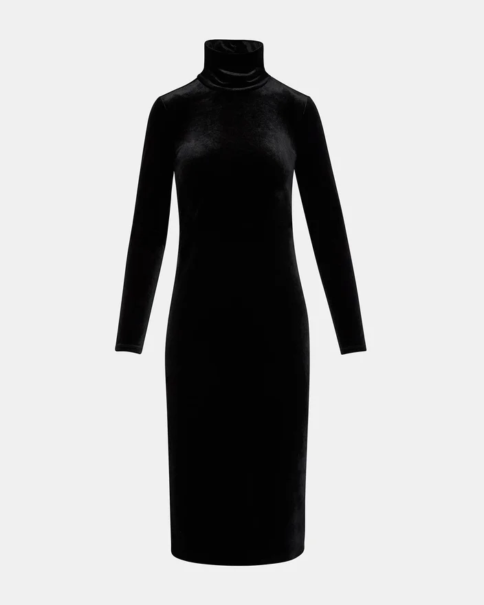 Desfrute de conforto e estilo com o vestido Skyler. Este vestido de veludo de manga comprida e gola alta oferece um visual chique e moderno, enquanto o comprimento midi proporciona versatilidade para qualquer ocasião. As costas abertas acrescentam um toque de elegância a este vestido indispensável.