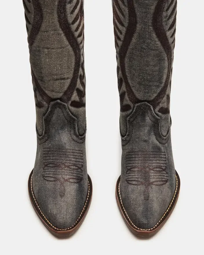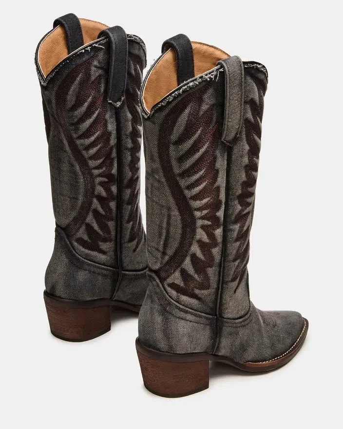 Habilmente confecionadas, estas botas Albany Black Denim apresentam um design de biqueira pontiaguda e um Estilo Western tradicional. Fabricadas com materiais de qualidade, estas botas são elegantes e duráveis.