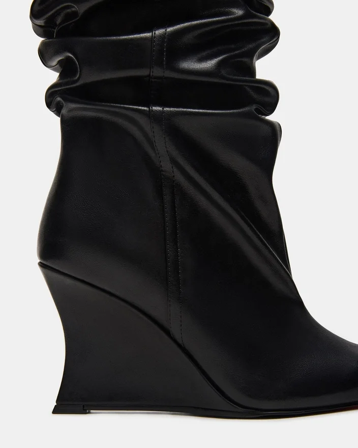 A bota Distortion apresenta um design franzido, sapatos de cunha e biqueira pontiaguda, estendendo-se até à altura do joelho para uma silhueta ousada e vanguardista. Concebida para combinar um estilo arrojado com um uso confortável, esta bota eleva qualquer look com o seu design elegante e o apoio distintivo da cunha. Ideal para quem procura uma peça marcante que equilibre tendência e praticabilidade.li>