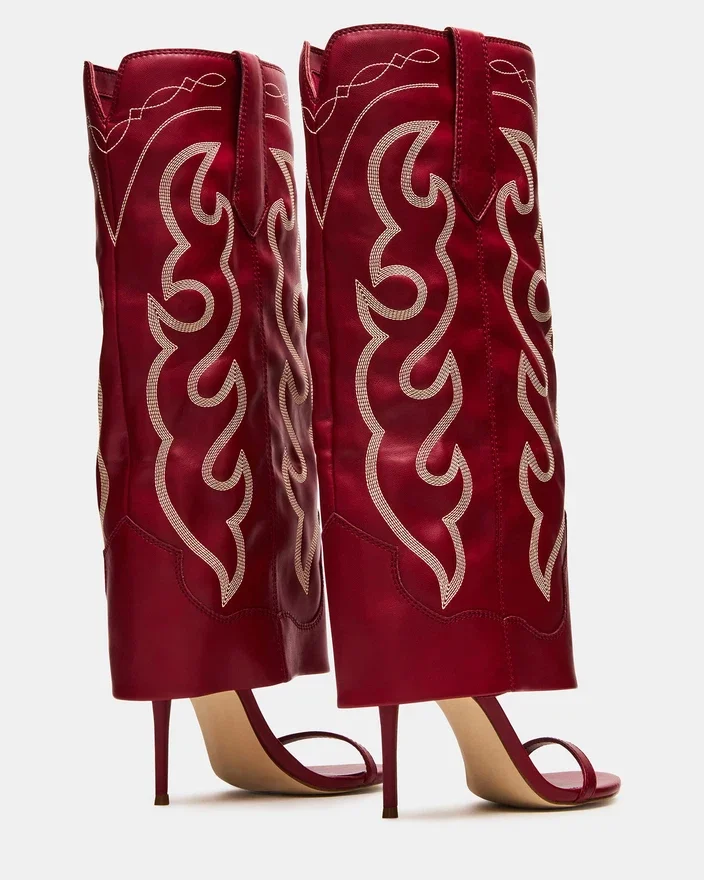 Habilmente concebida e fabricada, a bota Ravine Estilo Western Red com cano até ao joelho e aba apresenta uma ponta aberta e salto agulha para um toque de estilo. A ponta arredondada proporciona conforto, enquanto o design elegante acrescenta um toque de sofisticação. Eleve o seu look com esta bota indispensável.
