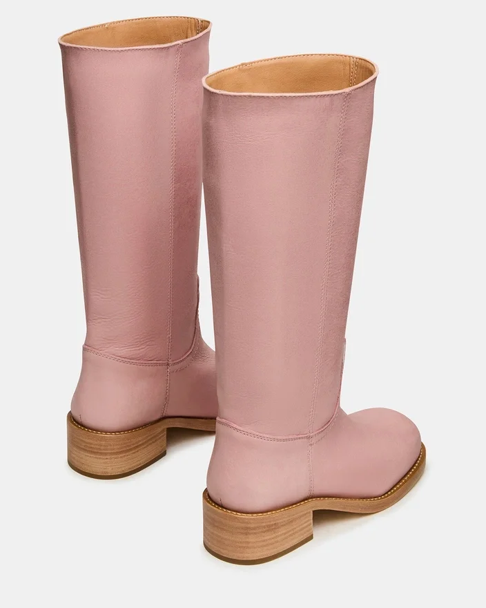 Eleve o seu estilo sem esforço com a bota Riggs em couro rosa. Com a sua biqueira quadrada e design elegante, esta bota logo abaixo do joelho é um must-have para qualquer pessoa que se preocupe com a moda. Esta bota intemporal proporciona conforto e sofisticação, tornando-a o complemento perfeito para qualquer look.