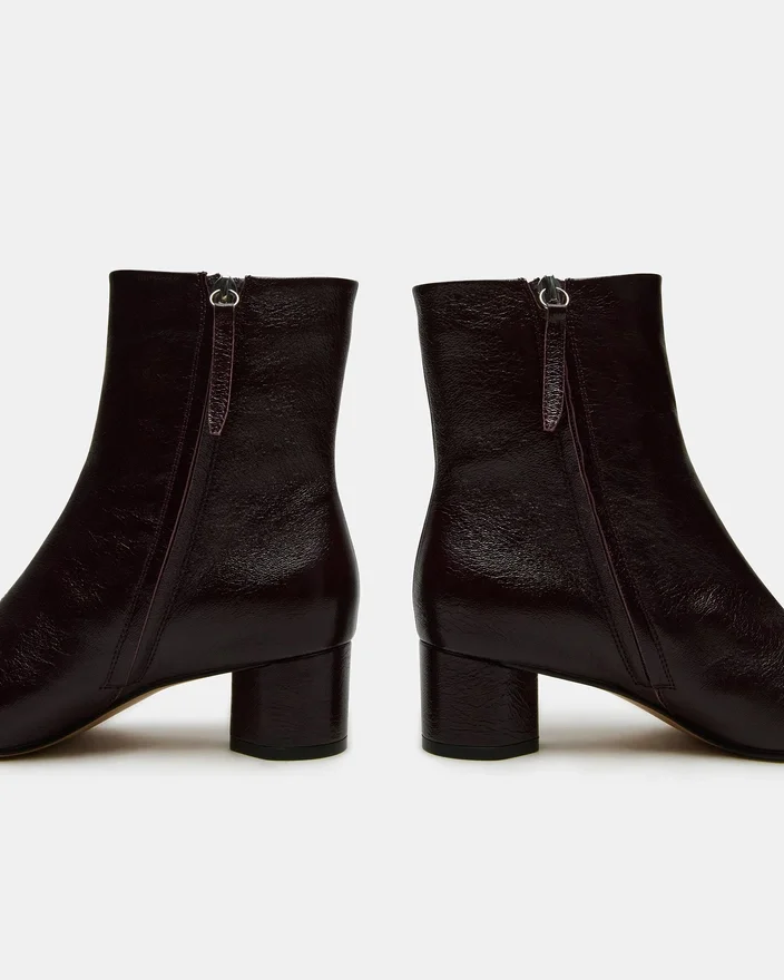 A bota de cano curto Strome apresenta uma biqueira arredondada e um salto em bloco robusto, combinando um estilo clássico com um apoio fiável. Concebida para oferecer conforto e durabilidade, esta bota é uma excelente escolha para elevar o seu guarda-roupa com um visual elegante e sofisticado. O seu acabamento único confere-lhe um brilho sofisticado, tornando-a versátil para usar tanto de dia como à noite.