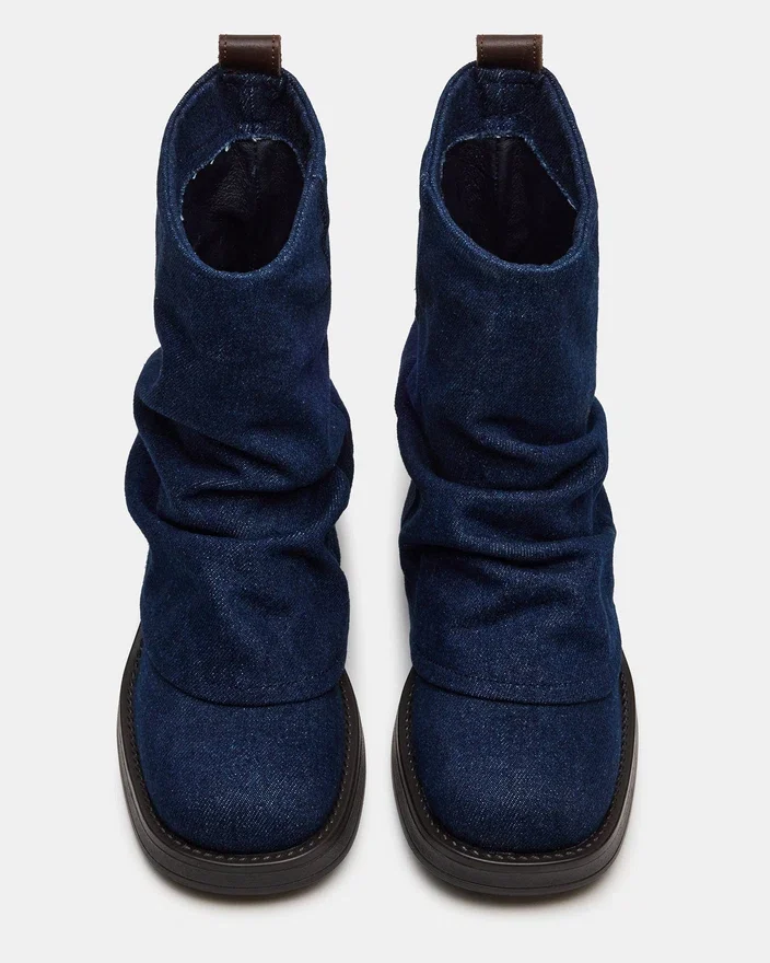 Uma bota de cano curto em tecido de ganga Benji apresenta um sofisticado design com aba dobrável, combinado com uma silhueta elegante de inspiração motoqueira. O seu detalhe exclusivo com fivela na parte traseira confere-lhe um toque distinto, aliando estilo a uma funcionalidade subtil. Concebida para oferecer conforto e um visual marcante, esta bota realça qualquer conjunto com um trabalho artesanal especializado e um toque contemporâneo.
