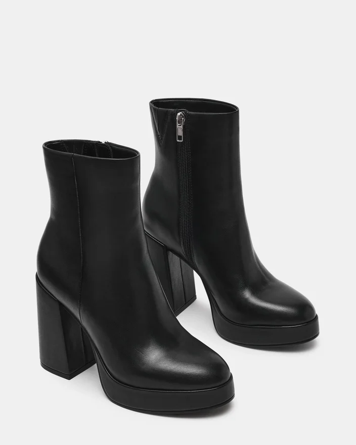 Eleve a sua coleção de calçado com o botin de cano curto com salto em bloco e plataforma Tyra em couro preto. Confecionado com materiais de alta qualidade, este botin oferece estilo e estabilidade graças ao seu salto em bloco robusto e sola com plataforma. A altura do cano proporciona versatilidade, tornando-o ideal para ocasiões formais ou para dar um toque de ousadia a looks casuais. A construção durável garante conforto e apoio duradouros, perfeitos para uso prolongado. Uma escolha de especialistas para quem procura uma silhueta moderna e confiante.