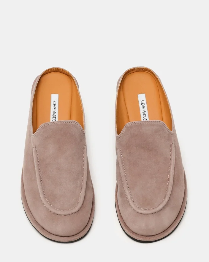 A sofisticação natural combina com o conforto do dia a dia com a mules Harrington em camurça cinza-escura. A silhueta elegante transita facilmente de ocasiões casuais para ambientes profissionais, enquanto a sola plana proporciona conforto durante todo o dia sem sacrificar o estilo. Um design intemporal de mules que se adapta a qualquer guarda-roupa com elegância discreta e versatilidade prática.