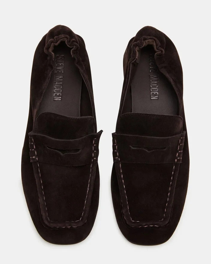 O mocassim Estee Brown em camurça apresenta um design refinado com salto e biqueira quadrada, combinando estilo contemporâneo com habilidade artesanal. O seu acabamento em camurça confere uma textura subtil, enquanto o sapato de salto estruturado proporciona elegância e apoio. Este mocassim é ideal para profissionais que procuram um calçado sofisticado, mas confortável, que realça qualquer look com um toque moderno.
