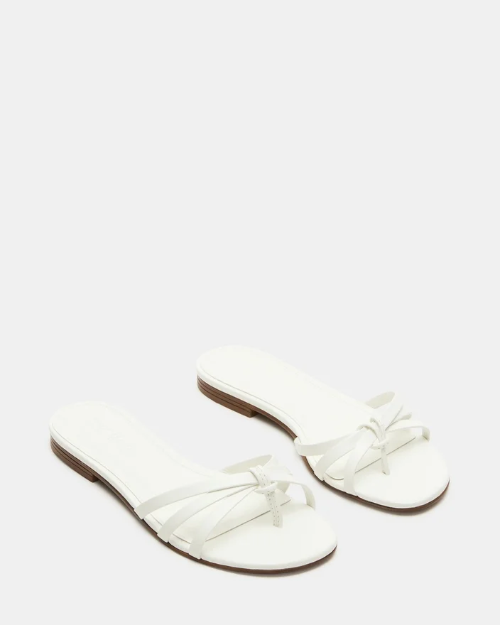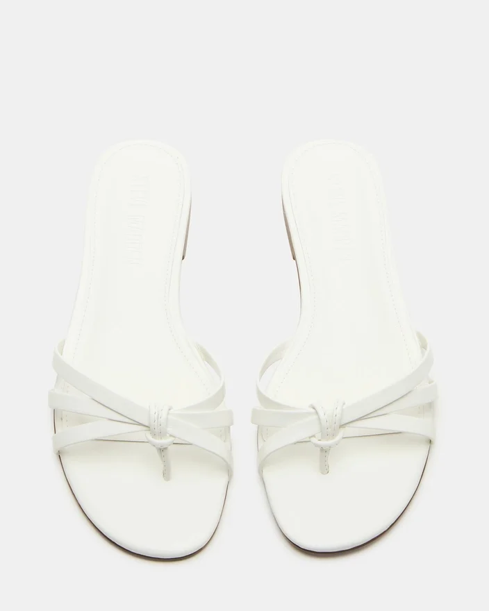 Confecionadas com materiais luxuosos, as sandálias Calissi em couro branco apresentam um design elegante com tiras e uma sola plana confortável. Perfeitas para qualquer ocasião, estas sandálias deslizantes realçam facilmente o seu look, proporcionando conforto durante todo o dia.