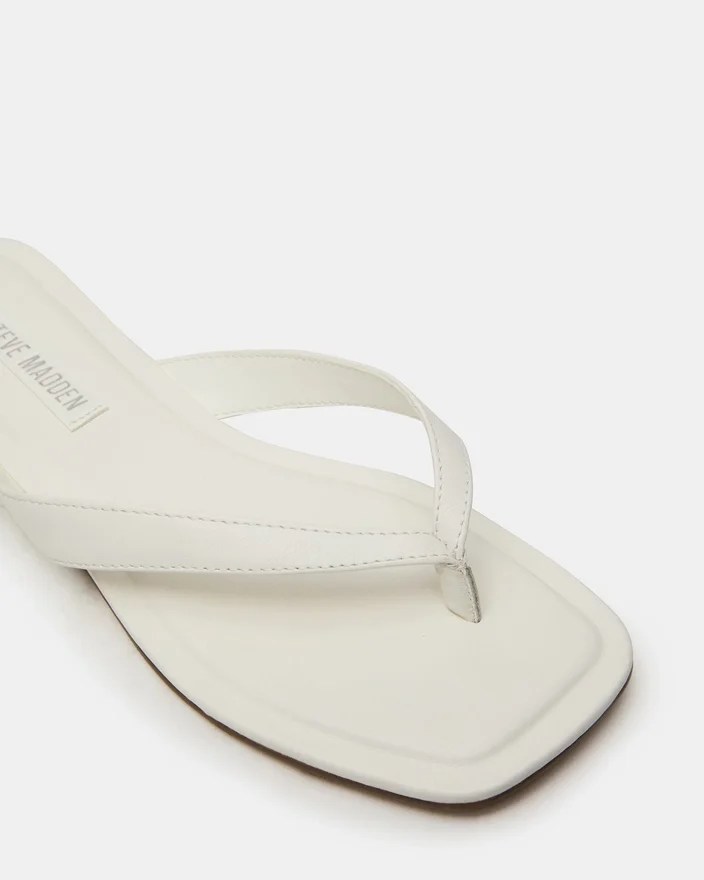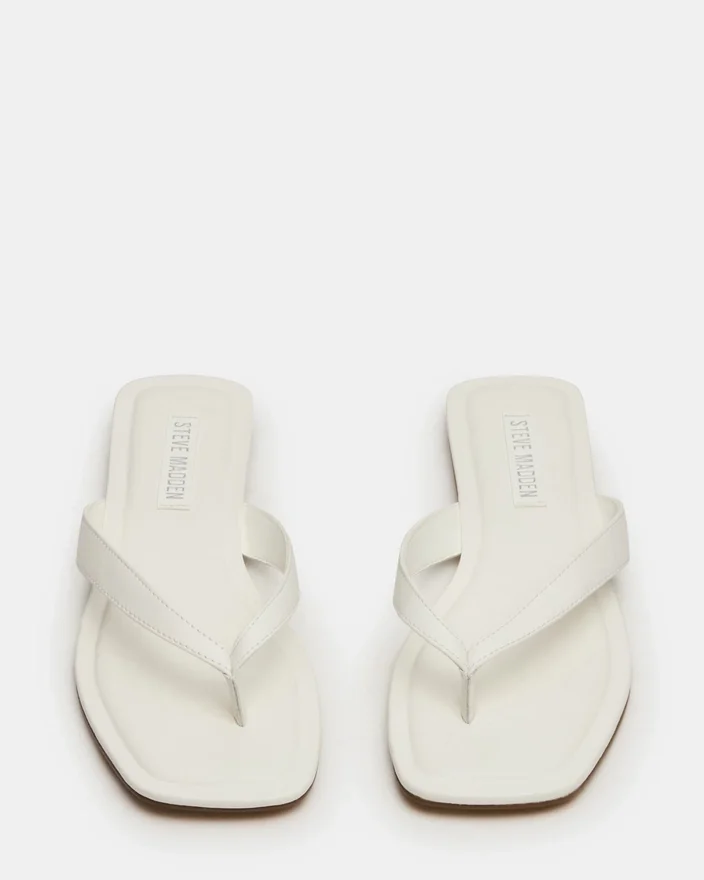 A sandália de couro branca Trella apresenta um design moderno de biqueira quadrada combinado com uma tira minimalista, oferecendo estilo e conforto. Fabricada com materiais de qualidade, proporciona um visual requintado, adequado para várias ocasiões. A sua silhueta elegante realça a forma do pé, garantindo ao mesmo tempo um ajuste seguro, tornando-a a escolha ideal para quem procura uma elegância discreta em calçado para climas quentes.