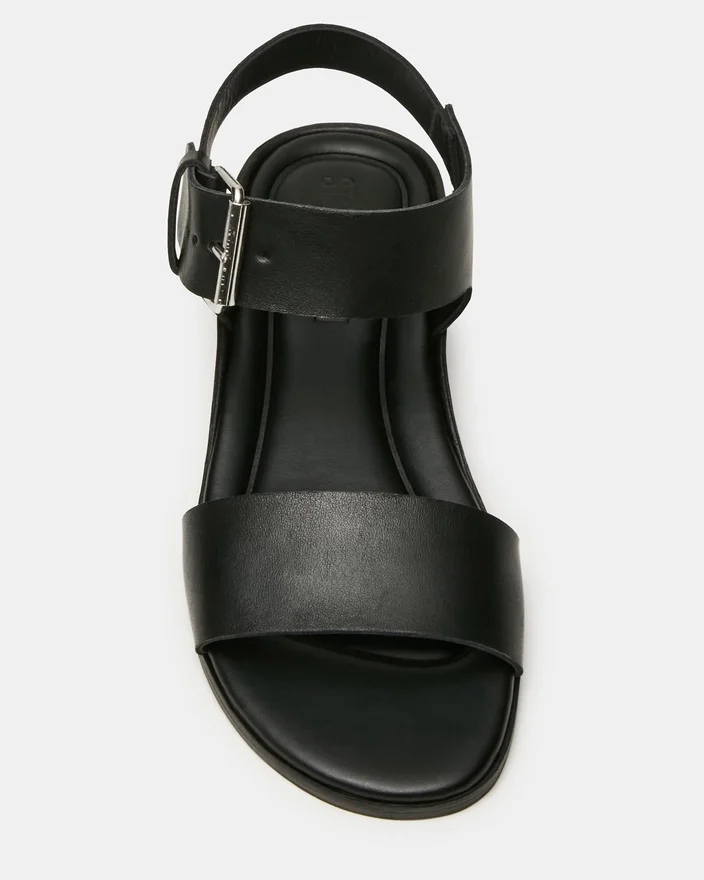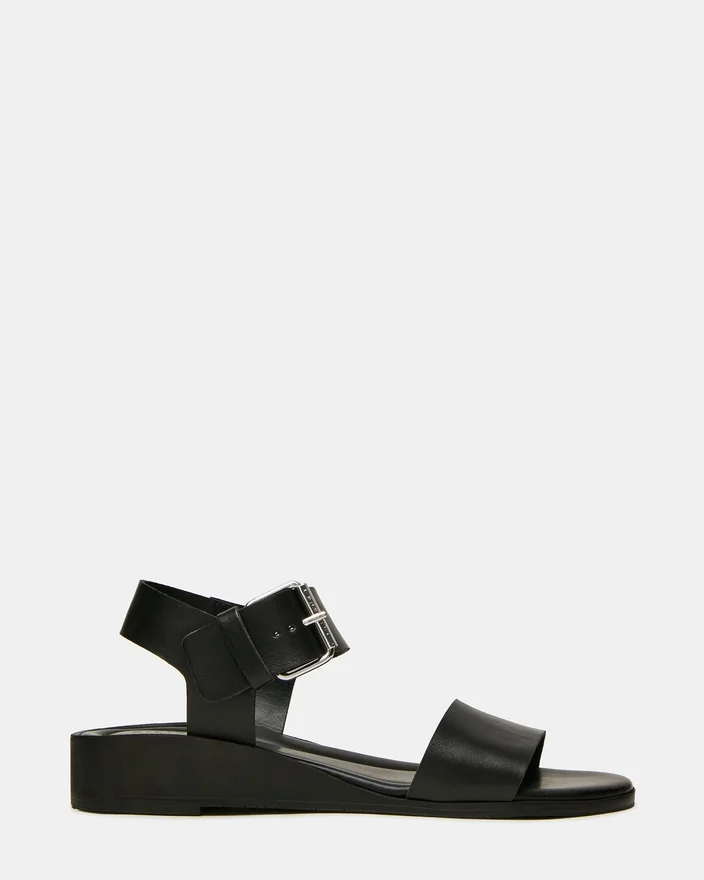 A sandália de cunha em couro preto Vaeda combina estilo com conforto para o dia a dia. Uma tira com fivela ajustável garante um ajuste personalizado, enquanto a sola em cunha proporciona um apoio fiável e um ligeiro aumento de altura. Quer vá a um brunch ou a fazer recados, esta sandália adapta-se ao seu estilo de vida com sofisticação discreta e conforto durante todo o dia.