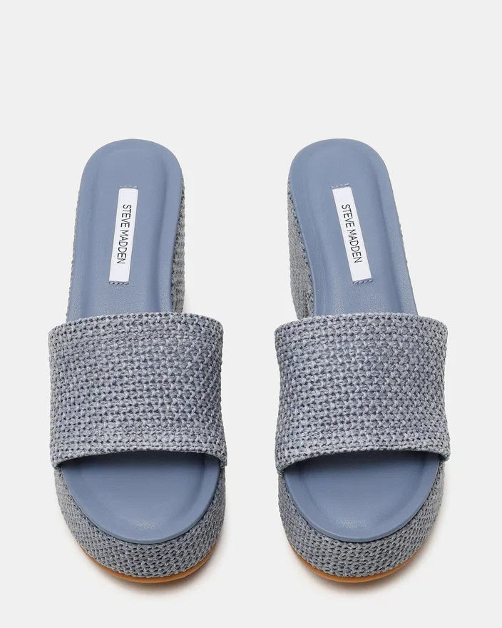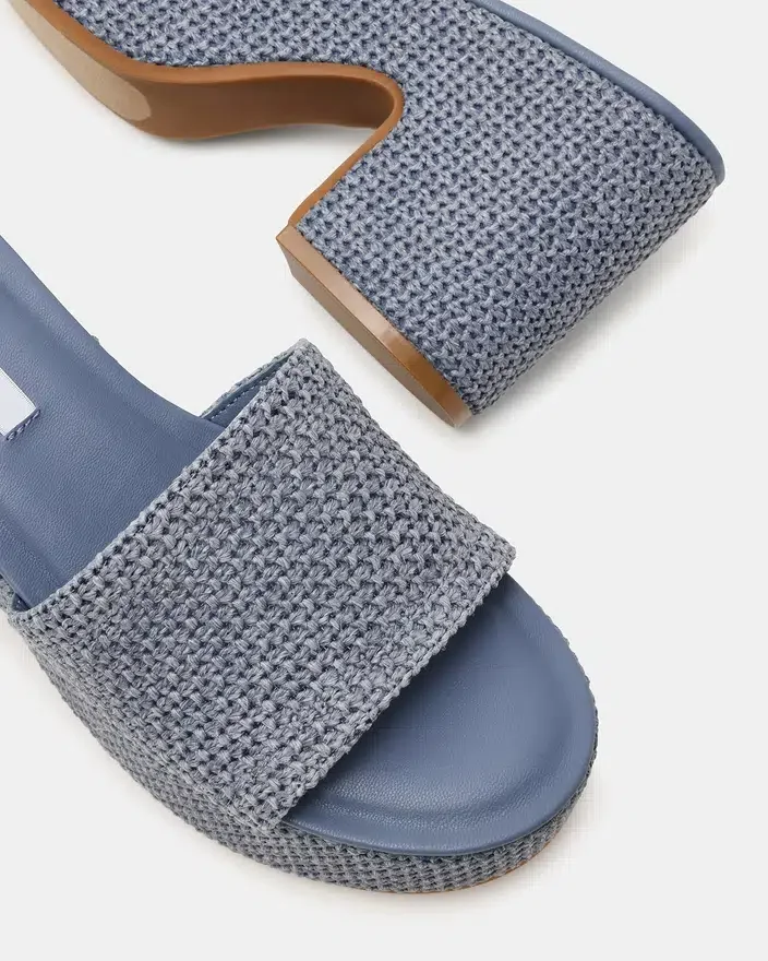 A sandália de plataforma Trippy Blue combina estilo sofisticado com conforto. Com uma parte superior em ráfia e um salto robusto, oferece um apoio fiável ao mesmo tempo que realça a sua silhueta. O design tipo mule permite calçá-la sem esforço, tornando-a a escolha ideal para ocasiões em dias quentes, onde tanto a facilidade como a elegância são essenciais.