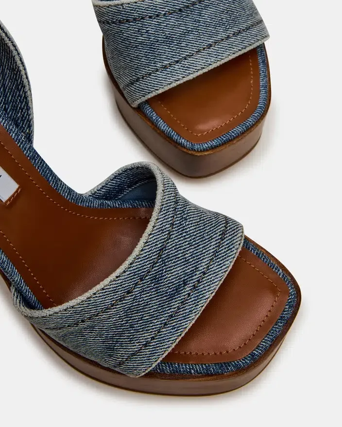 Habilmente confecionados com sapatos de plataforma, design com tiras e partes de baixo de madeira, os sapatos Floria Denim oferecem estilo e conforto. A biqueira quadrada acrescenta um toque de sofisticação, tornando-os perfeitos para qualquer ocasião. Melhore o seu visual com este calçado luxuoso e versátil.