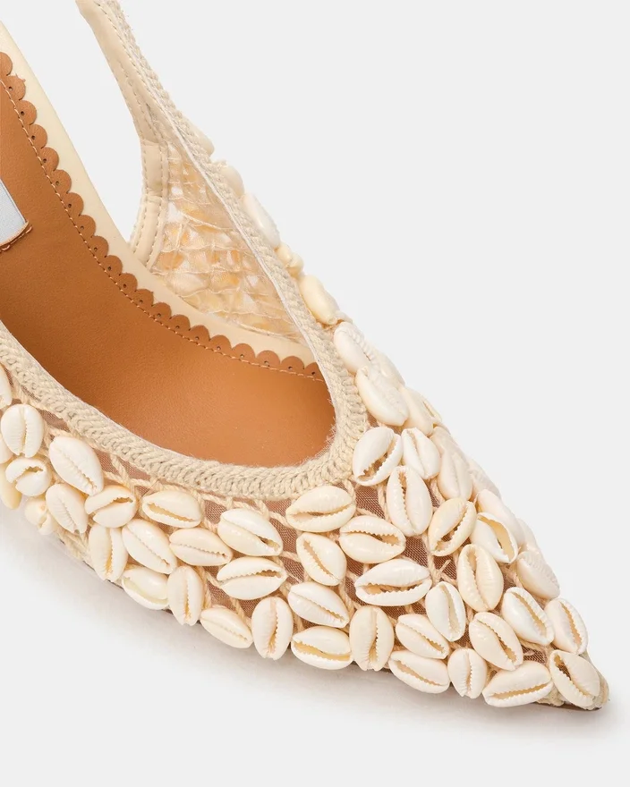 Apresentamos os sapatos de salto alto Andromeda Shell Natural. Este elegante modelo de salto alto apresenta um design de biqueira pontiaguda e salto agulha para um look sofisticado. A tira traseira proporciona um ajuste seguro, enquanto o design exclusivo acrescenta um toque de luxo. Perfeitos para qualquer ocasião formal, estes sapatos de salto elevarão o seu look a um novo nível.