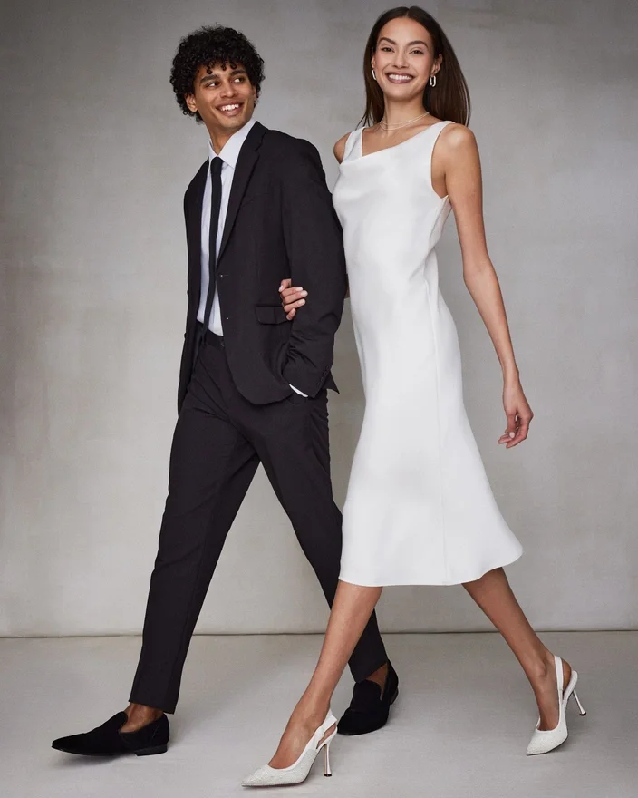 Uma fita de gorgorão envolve a tira traseira do sapato de salto agulha de bico fino Bri e termina com um laço que realça a lateral do sapato.