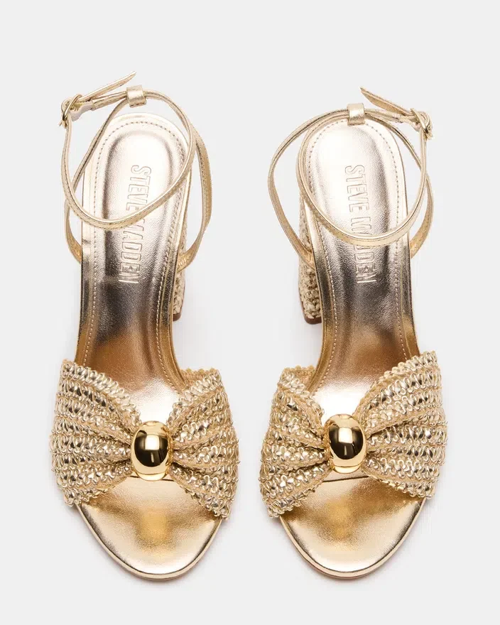 A sandália Cheyla Gold apresenta um elegante sapato de salto em ráfia combinado com um sapato de salto grosso e resistente para conforto durante todo o dia. Com uma tira de segurança no tornozelo, esta sandália oferece tanto estilo como funcionalidade. Melhore o seu guarda-roupa de verão com este calçado versátil e chique.