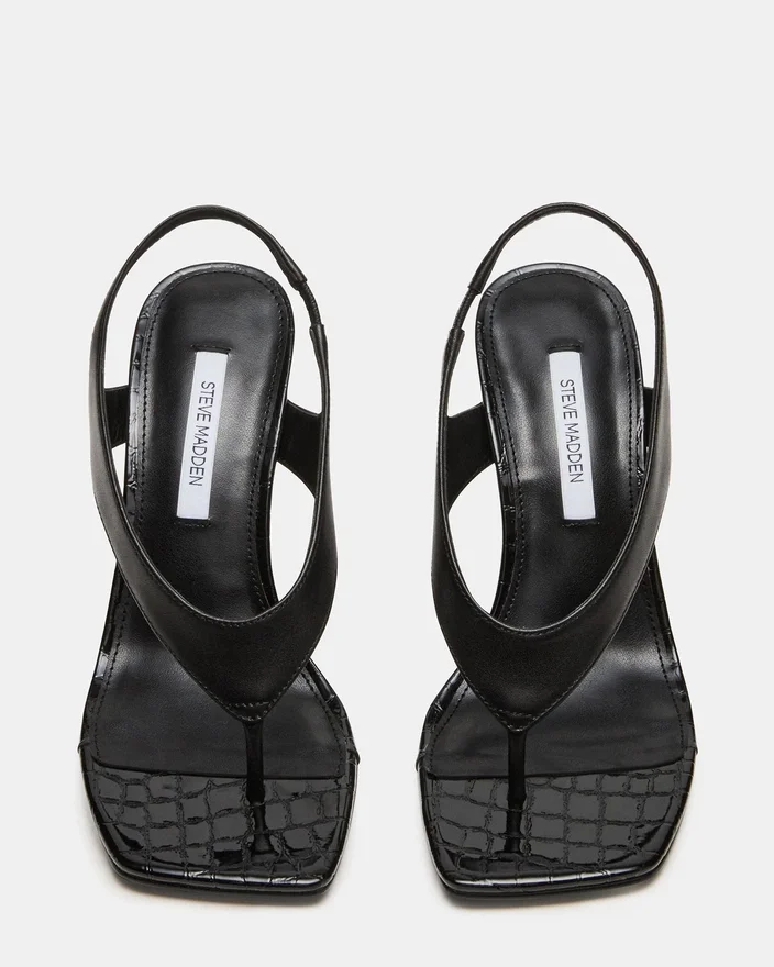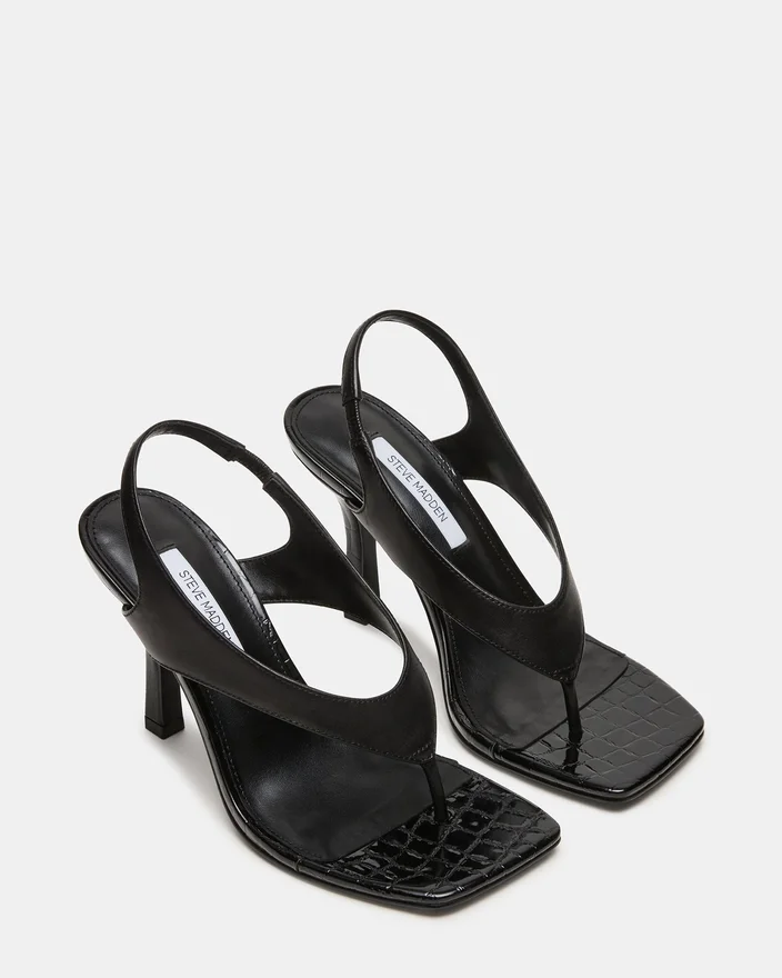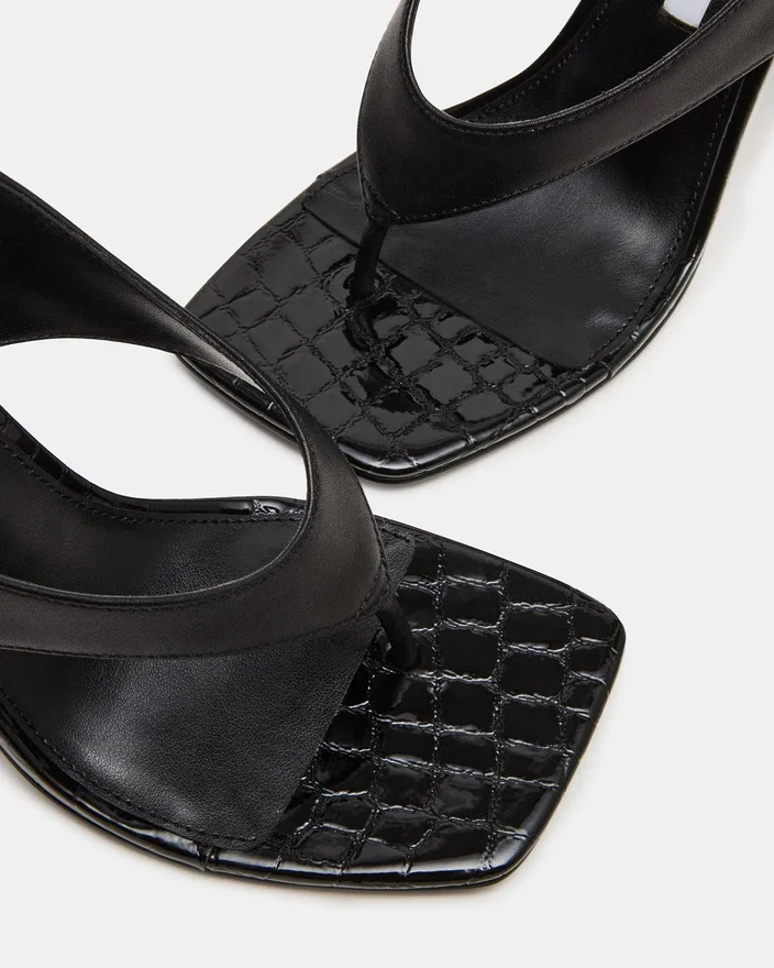 O Improv em couro preto combina uma silhueta sofisticada de biqueira quadrada com um design de sapatos abertos atrás seguros, proporcionando estilo e estabilidade. Esta sandália de dedo apresenta um salto refinado que eleva o seu look diário, mantendo o conforto para uso durante todo o dia.