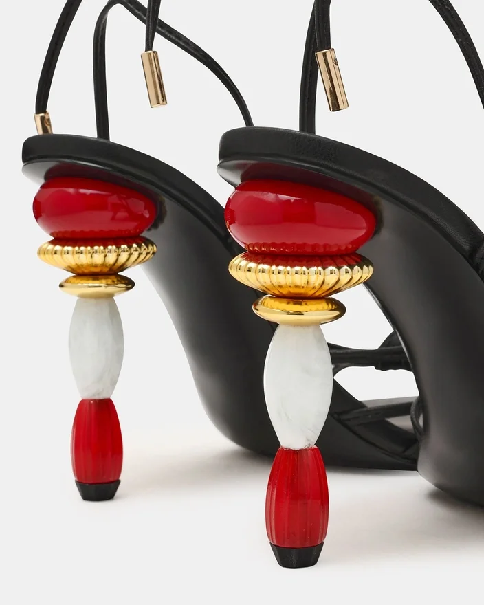 O Solena Black é um sapato de salto alto com tiras, que apresenta uma silhueta esculpida e uma biqueira quadrada arquitetónica. O design com laço na perna cria um ajuste elegante e ajustável que realça o tornozelo, ao mesmo tempo que oferece versatilidade de estilo personalizável. A estrutura refinada do salto proporciona um apoio seguro e uma estética elegante, adequada para ocasiões especiais e guarda-roupas contemporâneos.