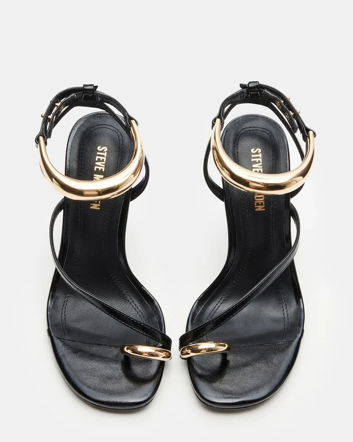 Entre no mundo da moda com o sapato de salto agulha Tia. Com detalhes ousados em metal dourado e um design com tiras, este sapato vai elevar qualquer look. Liberte a sua ousadia e conquiste o dia com estes sapatos de salto de destaque!