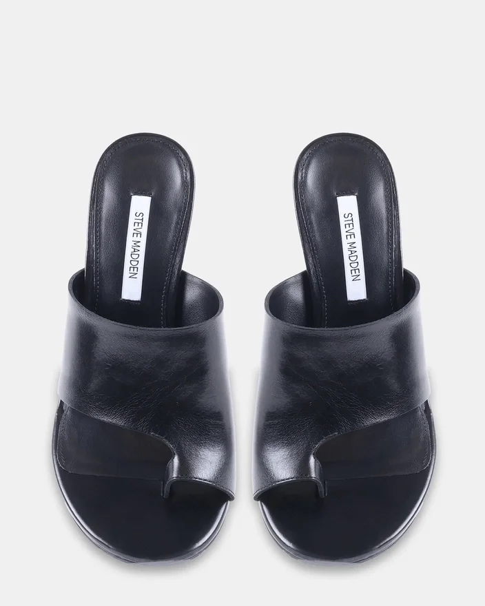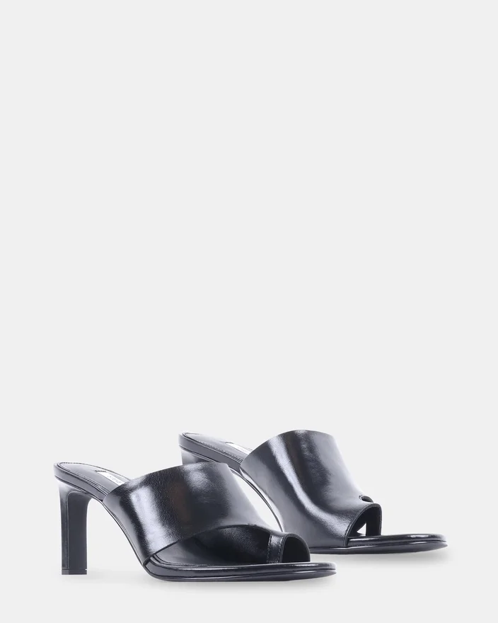 O salto em couro preto Valentin apresenta uma silhueta intemporal de biqueira redonda com um elegante design de tira na biqueira. O estilo sofisticado combina o apelo clássico com o conforto moderno, tornando-o perfeito para o uso diário sofisticado ou para ocasiões especiais. Confecionado com atenção aos detalhes, este mule oferece estilo e conforto para a mulher contemporânea.