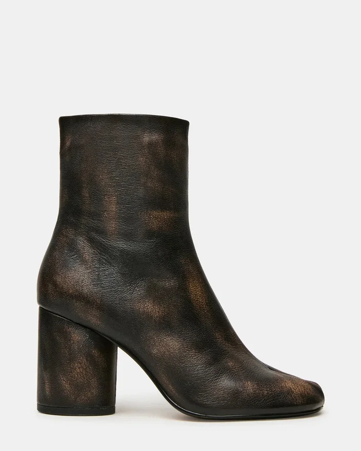 A Caro Brown Distressed apresenta a silhueta distintiva de Sapatos Tabi com biqueira dividida, oferecendo uma estética moderna com conforto funcional. Um salto em bloco robusto proporciona um apoio estável ao longo do dia, mantendo um perfil elegante. Este botin combina na perfeição um estilo sofisticado com versatilidade para o dia a dia.